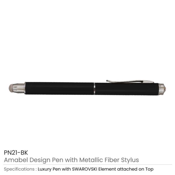 Amabel design stylus metal pen is a specially designed luxury pen. It is created with a metallic material. Thus, it is durable. This pen comprises a colorful metal barrel. Apart from the barrel, it also comprises a silver tip and chrome clip. It comprises a metallic fiber stylus. Thus, this stylus gives a smooth flow on your smartphones. So, it’s a perfect logo personalized pen with a stylus. The chrome clip at the end of the pen works like a holder. Thus, you can attach the pen to your shirt or bag. The SWAROVSKI element is attached to it. It provides a crystalline look. Thus, you can also use this personalized pen with a stylus for business promotion.