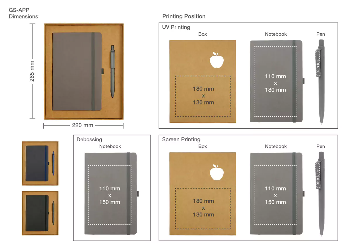 Printing Area Details Gift Sets GS-APP – MADE IN ITALY