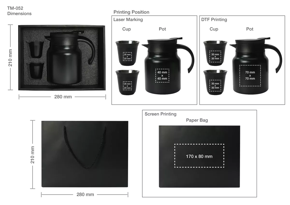 Tea & Coffee Pot with Cups Set Printing Area Details: