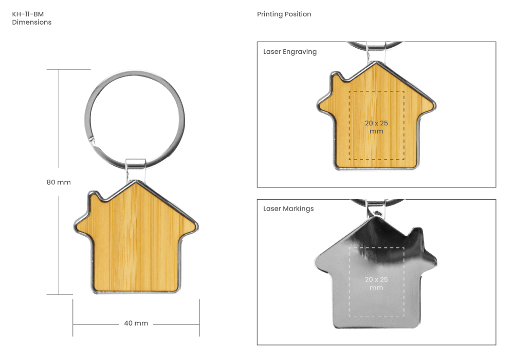 Bamboo Metal Keychain House Shaped 32mm