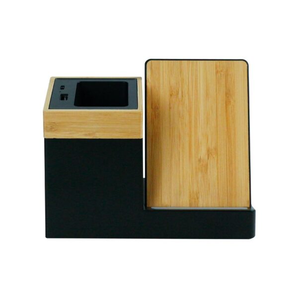 Bamboo Pen Holder with 15W Wireless Charger & LED Logo