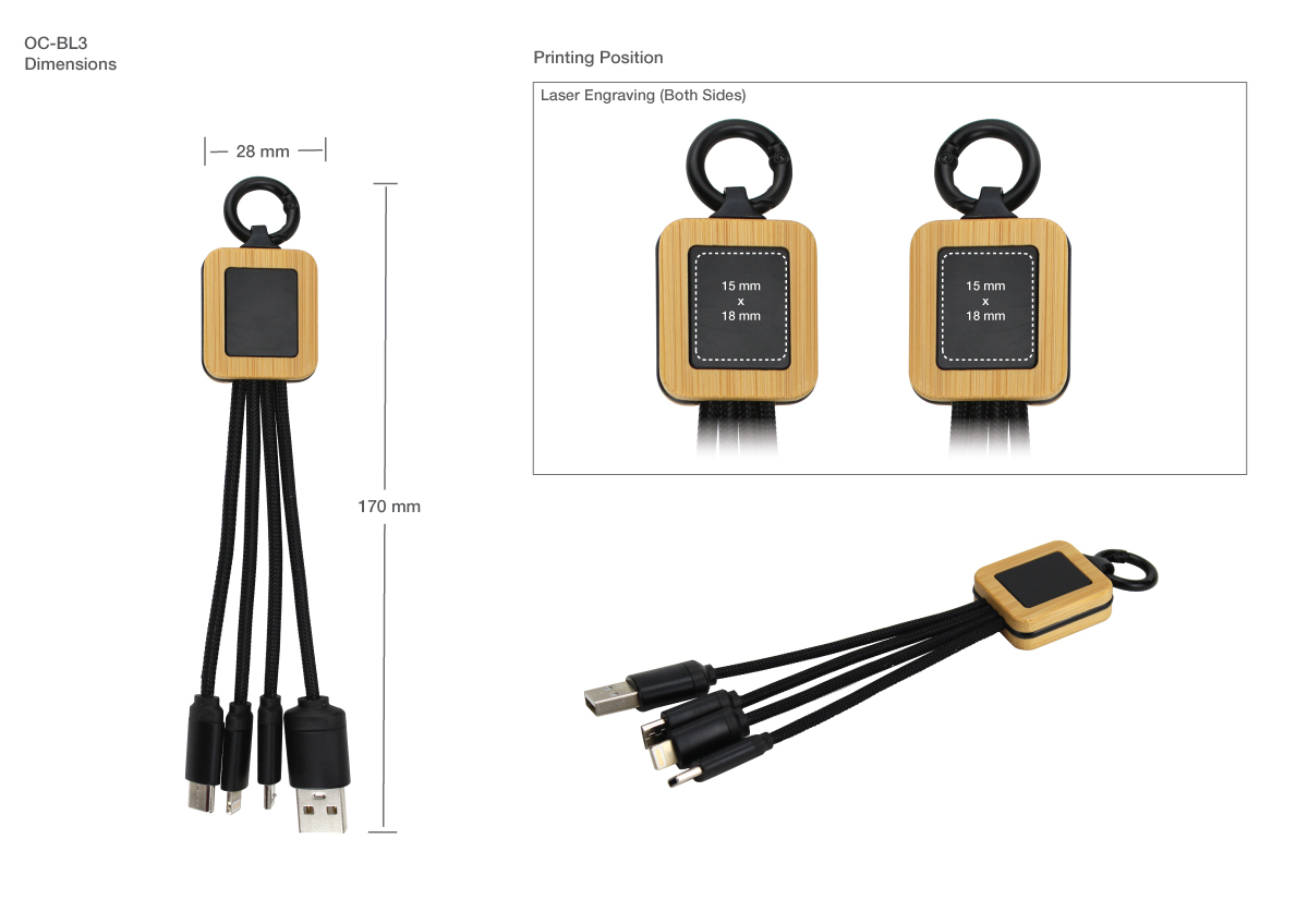Bamboo Light Up Logo Multi-Charging Cables