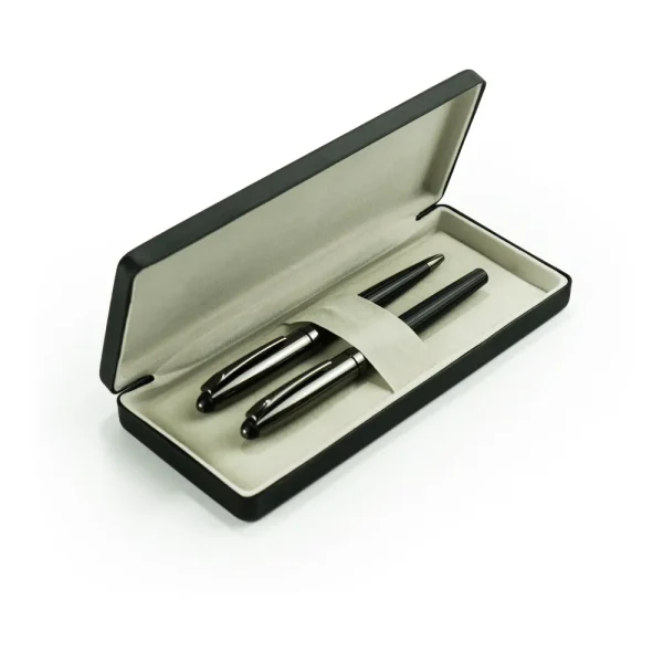 Black Metal Pen Set with Matte & Glossy Finish in PU Leather Box