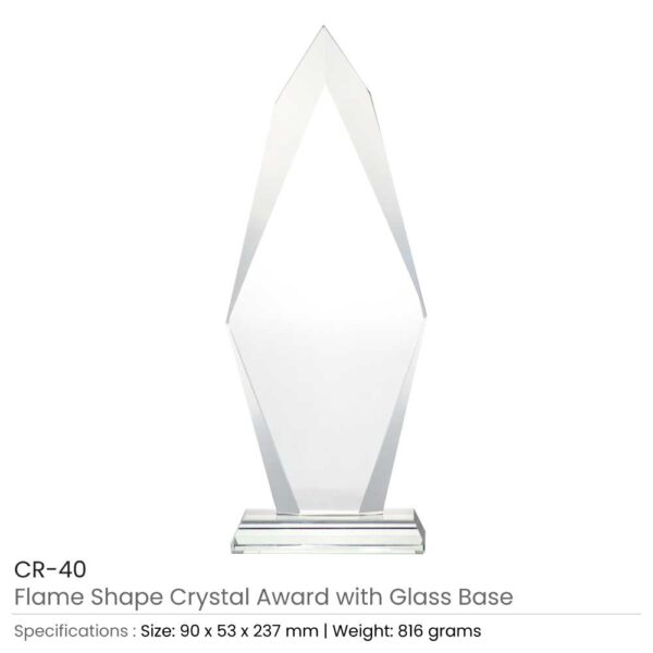 Flame Shape Crystal Awards with Glass base