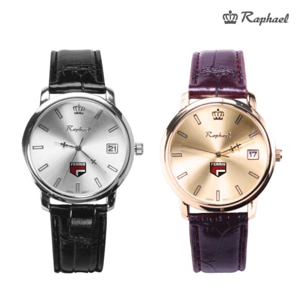 Raphael exclusive wristwatches with colorful leather straps are fashionable watches. These customized watches had crafted from metal and leather. Thus, they are so cool and durable. This beautiful watch comprises either a silver circular frame or a silver circular frame w While the stylish leather straps are in either matte black or matte maroon. These straps enhance the creative design of watches. The dial of these customized watches is either silver or gold. While the needles are also either silver or golden in color. It also comprises a tiny area in a square shape. This area is used to show the date. Thus, the watch is pretty as well as useful. The wrist size is 40 mm.