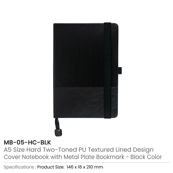 Hard Cover PU Notebooks in A5 Size with Metal Plate Bookmark