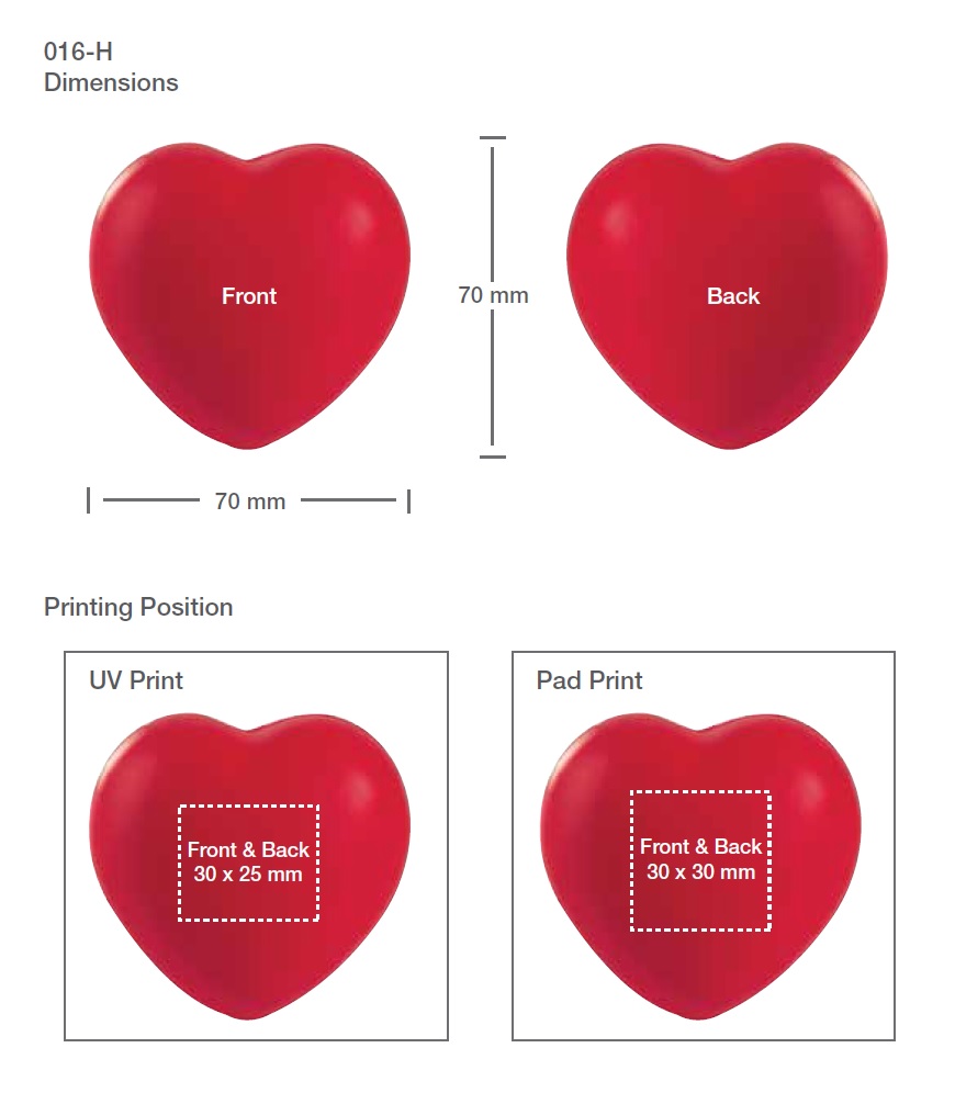 Heart-shaped anti-stress items are customizable stress-relieving items. They are popular items for reducing stress levels. They are composed of soft foam rubber material. Thus, they are comfortable and smooth. They are a good choice for advertising because they have large surfaces. They can fit a large logo or a colorful design. You can give it to your customers. People will love your concern about mental health. These anti-stress hearts can improve concentration, reduce blood pressure, help with anxiety and so much more. Because of their soft material, they are lightweight and compact. It comes in the size of 65 x 70 x 50 mm. These personalized anti-stress hearts draw a lot of attention because it is decoration items. As a result, it is an ideal promotional gift for business promotion.