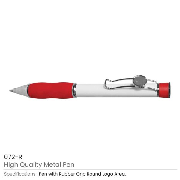 Metal pens with logo and epoxy coating are stylish and creative pens. These pens had crafted with an original metallic material. Thus, they are durable and long-lasting. These stylish pens have a white metallic body including the lower barrel. While the grip had crafted with colorful rubber material. Thus, you can use these pens as promotional items for business promotions. Besides, the barrel of this pen also has a unique and stylish clip. The clip and tip had crafted with shiny silver chrome material. Thus, these items are the best items for corporate gift suppliers in Sharjah. These logo metal pens have a top round silver area for logo imprinting.