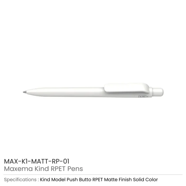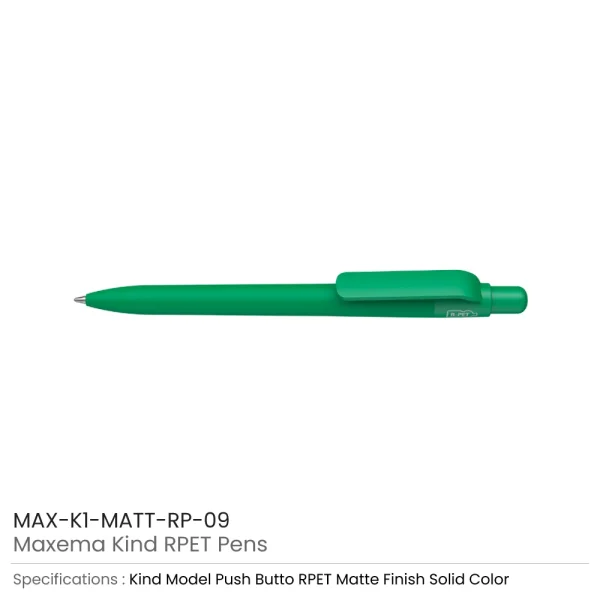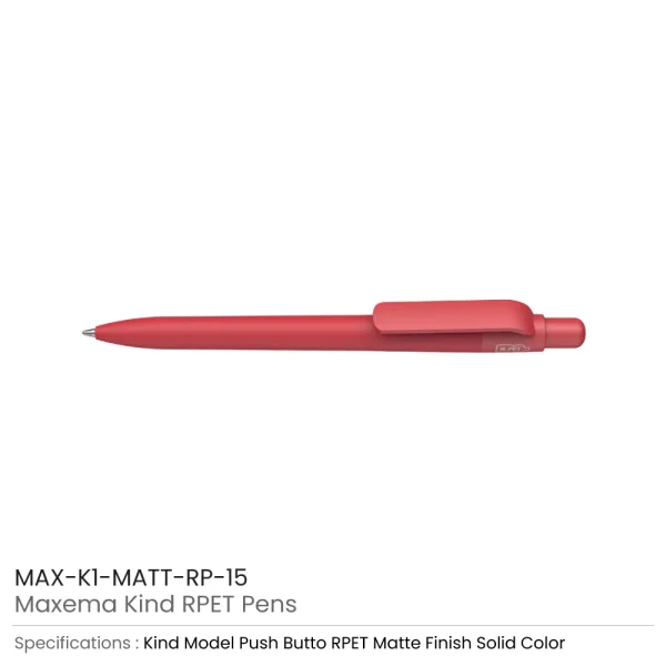 Eco-friendly Maxema Kind Pens are crafted from certified rPET, derived from the recycling of plastic bottles collected from ocean-bound waste. These premium Italian pens feature a matte, solid color barrel with a push-button clip design, combining sustainability with elegant style.