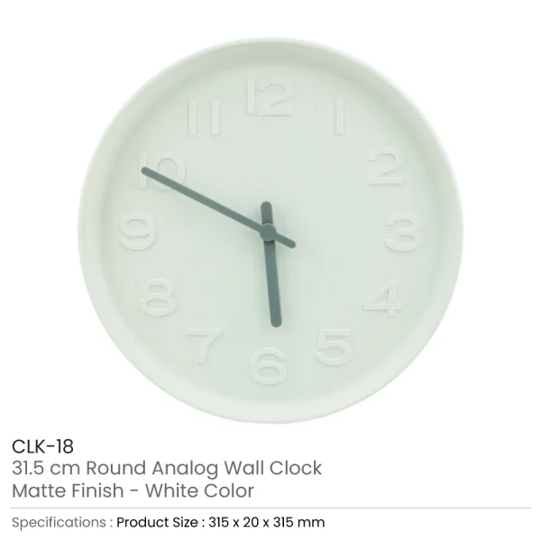 Round Analog Wall Clock Matte Finish White