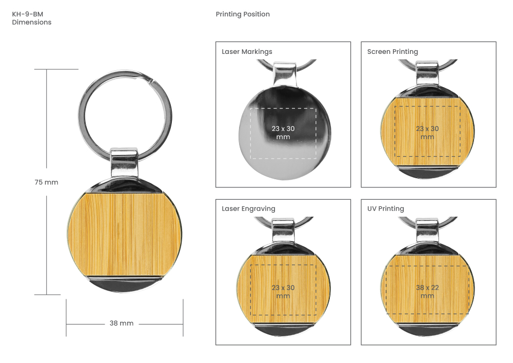 Round Bamboo & Metal Keychains 32mm