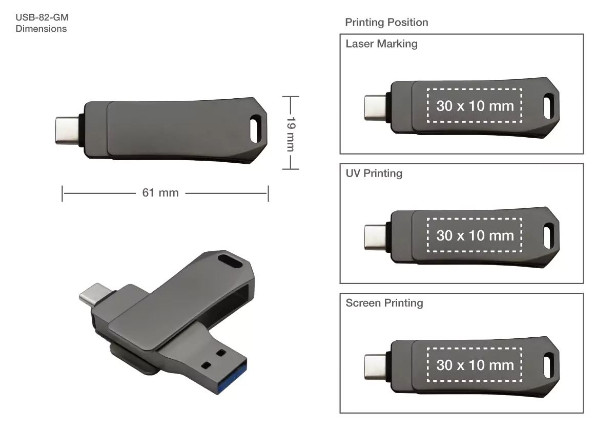 Swivel OTG USB in Gun Metal 64GB V. 3.0 Type C